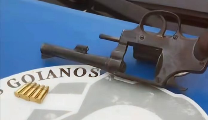 Durante buscas, foi encontrado um revólver sobre palhas de feno próximo às baias de cavalos. O autor admitiu ser o dono da arma e não possuir registro. Diante disso, foi preso pelos crimes de ameaça e porte ilegal de arma de fogo, sendo encaminhado, junto à vítima, à Delegacia de Polícia Civil para as providências cabíveis.
