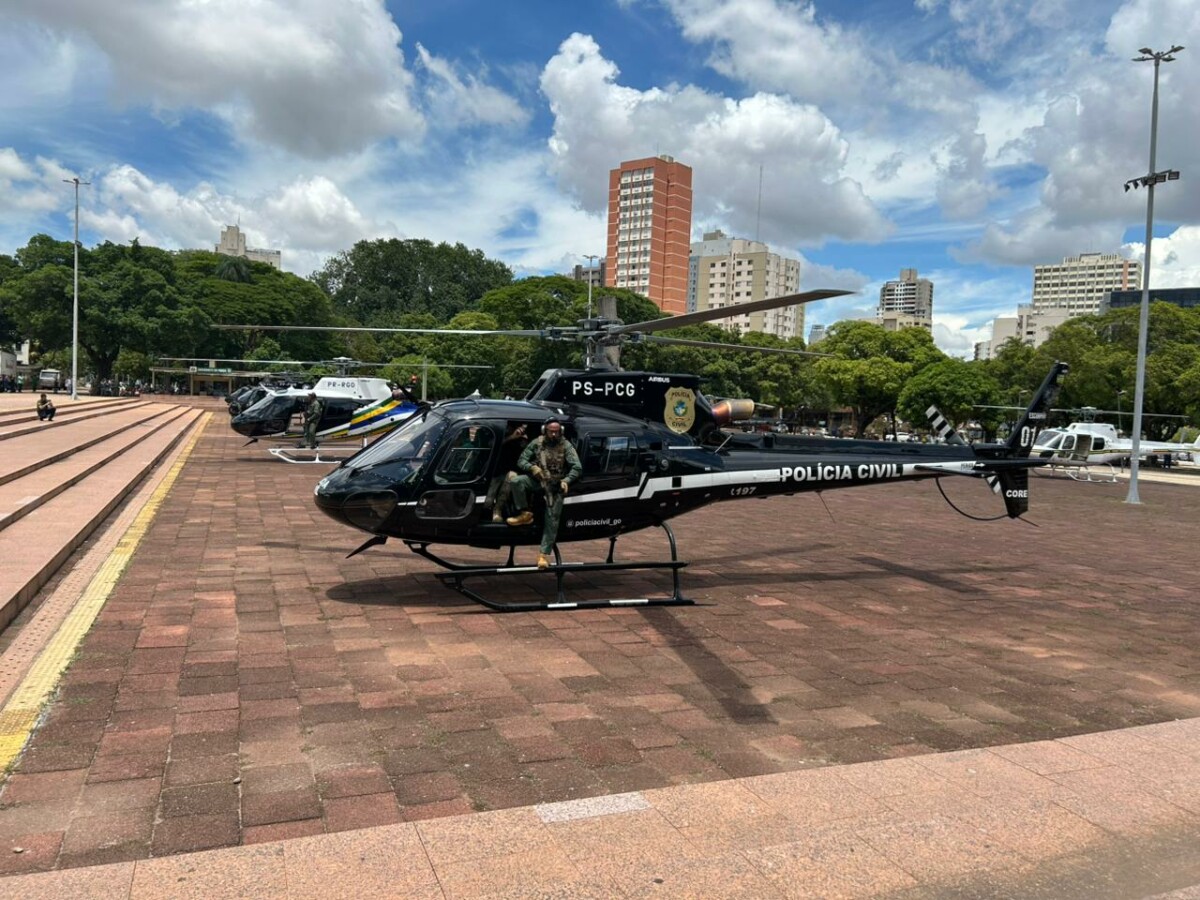 O Governo de Goiás realizou, nesta segunda-feira (12), solenidade oficial para a entrega de um novo helicóptero à Polícia Civil de Goiás (PCGO), além de outras três aeronaves destinadas à Polícia Militar e ao Serviço Aéreo do Estado de Goiás. Na ocasião, o governador Ronaldo Caiado também anunciou a criação de duas novas bases aéreas policiais no Estado, uma no Entorno do Distrito Federal e outra na região Sudoeste goiano.