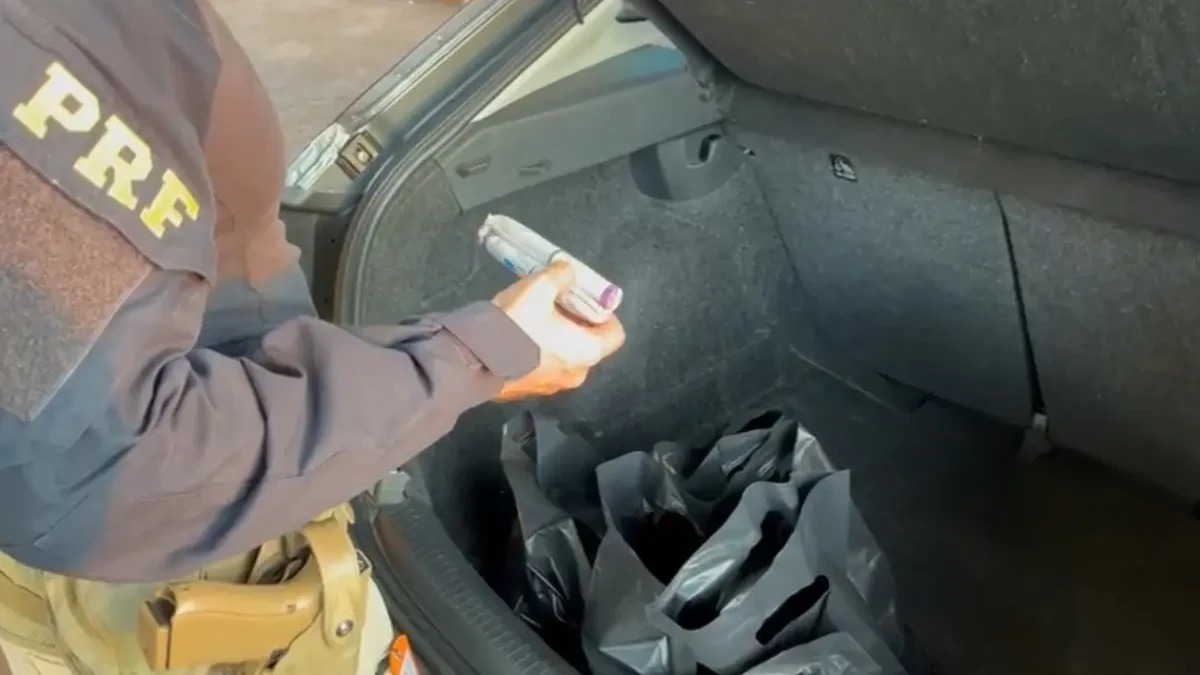 Durante a vistoria, os policiais localizaram uma bolsa no interior do carro. Ao ser questionado, o passageiro afirmou que o material se tratava de canetas emagrecedoras. O condutor informou que a carga havia sido adquirida em Londres, na Inglaterra, e declarou que não possuía notas fiscais ou receitas médicas.