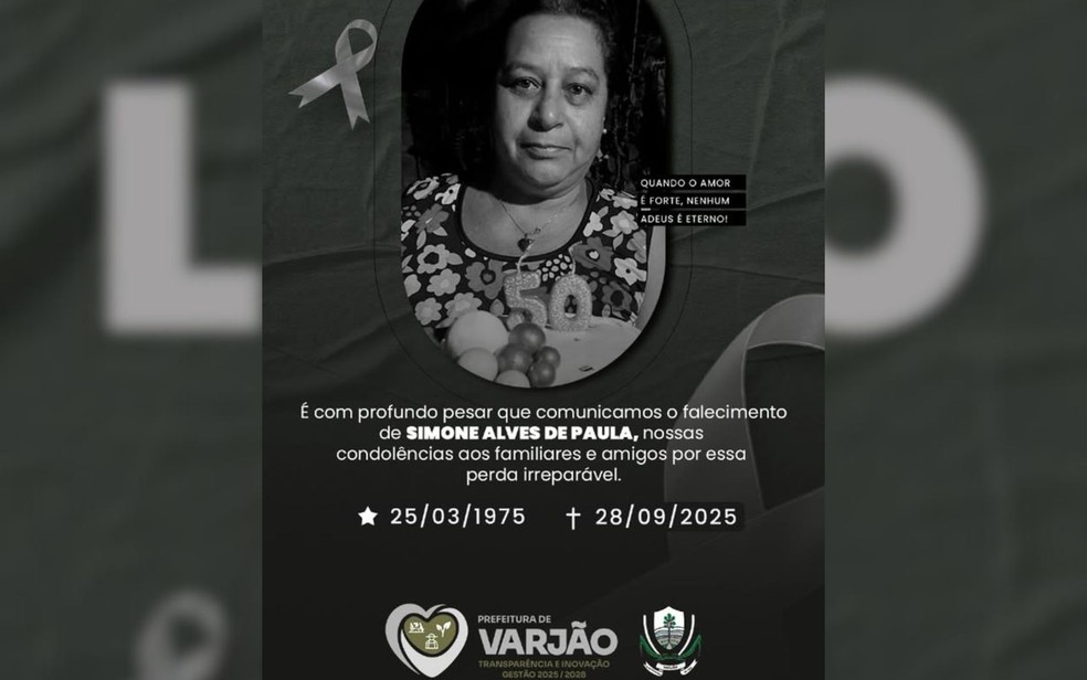 Nas redes sociais, a Prefeitura de Varjão publicou uma nota de pesar sobre a morte de Simone. “Quando o amor é forte, nenhum adeus é eterno. Uma perda irreparável”, declarou a administração municipal.