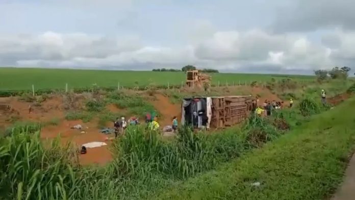 Um ônibus que transportava 48 passageiros tombou nesta quarta-feira (17/12) enquanto trafegava pela BR-050, no município de Campo Alegre de Goiás. Segundo informações da Polícia Rodoviária Federal (PRF), o acidente ocorreu no km 198 da rodovia.