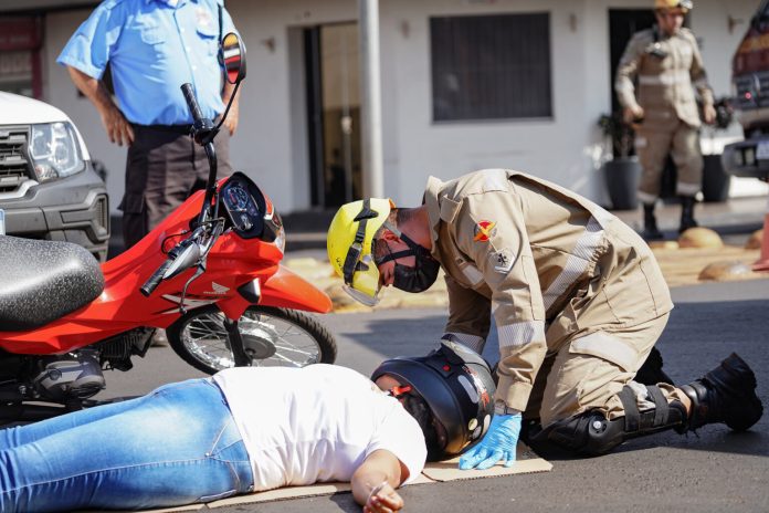 A encenação reproduziu um acidente entre uma motocicleta e um carro na rotatória do cruzamento, destacando o papel das forças de segurança e de saúde no atendimento às vítimas. A Guarda Civil Municipal (GCM) realizou o isolamento da área e orientou pedestres e motoristas, enquanto o Corpo de Bombeiros fez o resgate simulado, prestando os primeiros socorros e encaminhando a vítima ao Pronto Socorro Municipal.