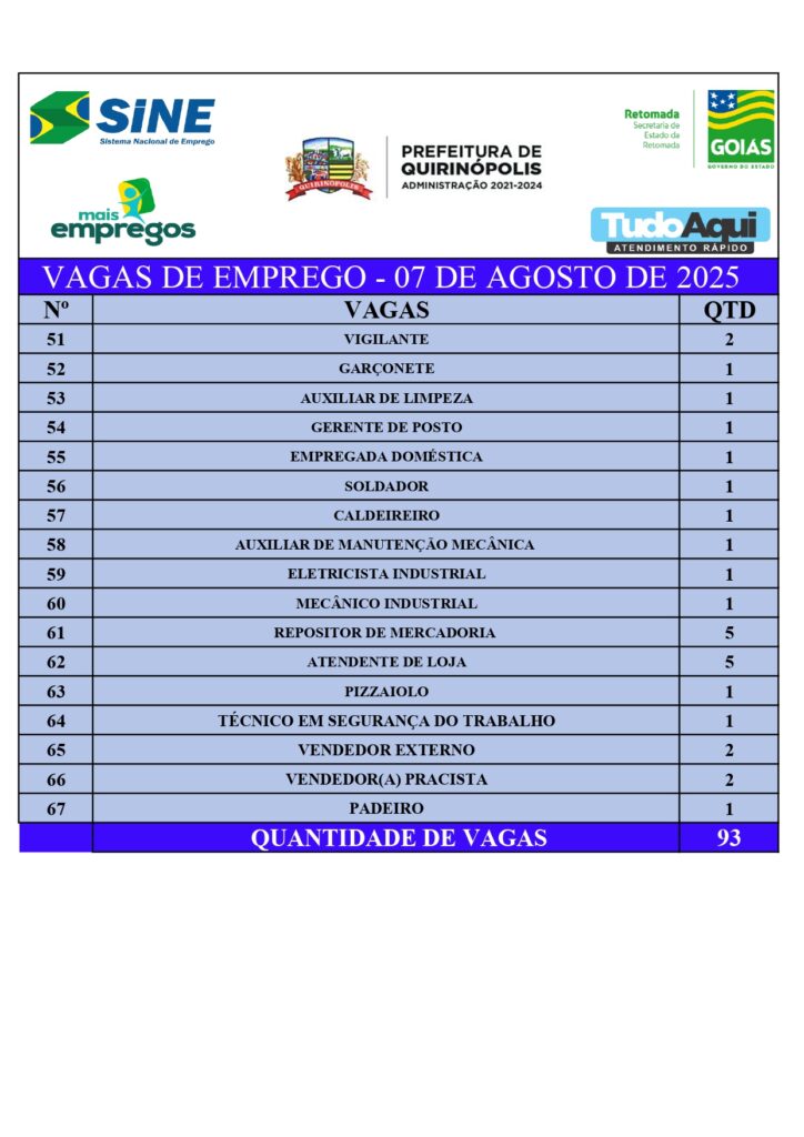 InícioDestaqueQUIRINÓPOLIS: VAGAS DE EMPREGODestaqueQuirinópolisQUIRINÓPOLIS: VAGAS DE EMPREGOBy Jornal Impar7 de agosto de 20250228CompartilhadoFacebookTwitterPinterestWhatsApp CompartilhadoFacebookTwitterPinterestWhatsApp Artigo anteriorPCGO, Agrodefesa e Vigilância Sanitária apreendem mais 2 toneladas de produtos armazenados e manipulados de maneira irregularPróximo artigoJATAÍ: PRF apreende 23 quilos de supermaconhaJornal Imparhttps://jornalimpar.com.brRELATED ARTICLES DestaqueQUIRINÓPOLIS: Estelionato envolvendo a negociação de uma motocicleta 28 de abril de 2026 DestaqueOperação integrada prende dono de estabelecimento por furto de energia elétrica em Senador Canedo 28 de abril de 2026 DestaqueBovinocultura de Goiás deve movimentar R$ 23,7 bilhões em 2026, aponta projeção 28 de abril de 2026 DEIXE UMA RESPOSTA Cancelar respostaComente:Por favor, insira seu comentário! Nome:*Por favor, digite seu nome aqui E-mail:*Você digitou um endereço de e-mail incorreto!Por favor, digite seu endereço de e-mail aqui Local na rede Internet: Salve meu nome, e-mail e site neste navegador para a próxima vez que eu comentar. Most PopularQUIRINÓPOLIS: Estelionato envolvendo a negociação de uma motocicleta 28 de abril de 2026 Operação integrada prende dono de estabelecimento por furto de energia elétrica em Senador Canedo 28 de abril de 2026 Bovinocultura de Goiás deve movimentar R$ 23,7 bilhões em 2026, aponta projeção 28 de abril de 2026 QUIRINÓPOLIS: GCM conduz para delegacia indivíduo por ameaça e descumprimento de medida protetiva 27 de abril de 2026 Carregue maisRecent Comments