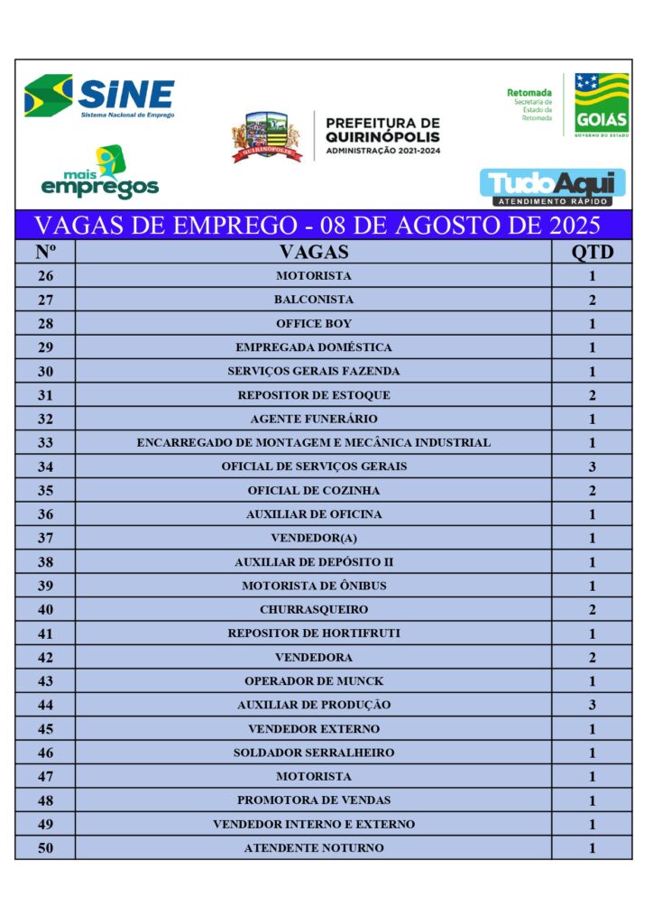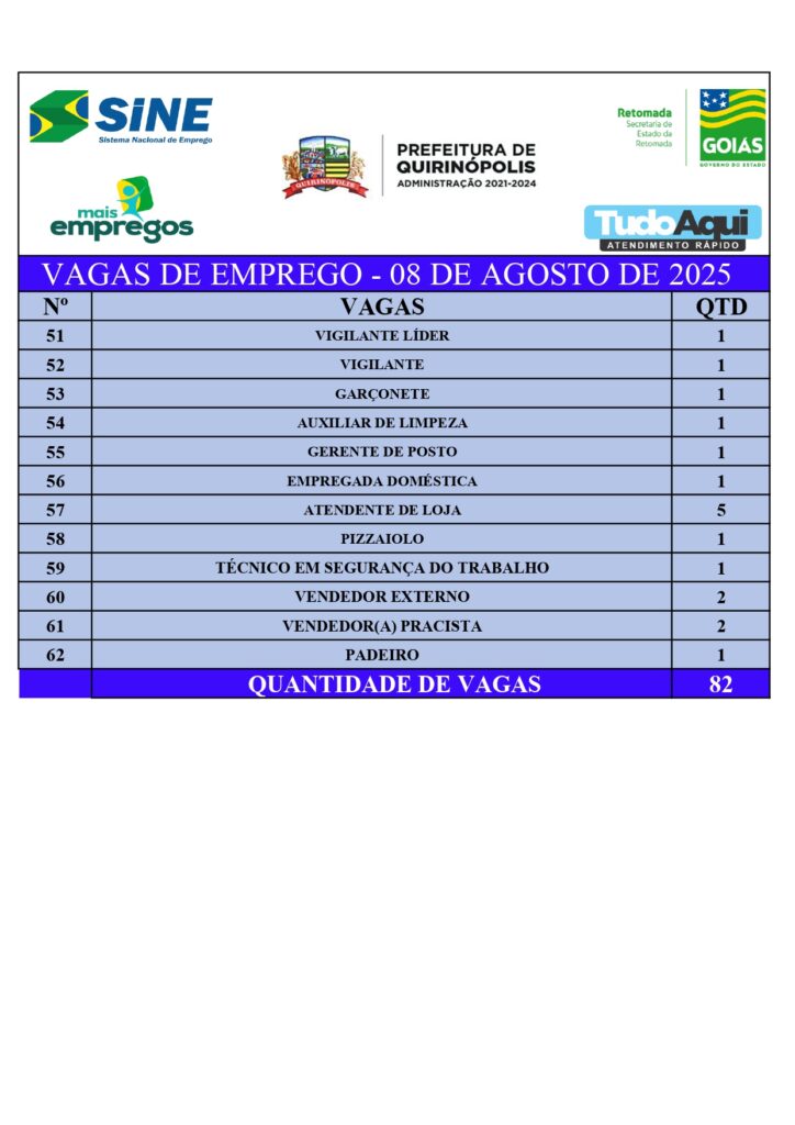 InícioDestaqueQUIRINÓPOLIS: VAGAS DE EMPREGO