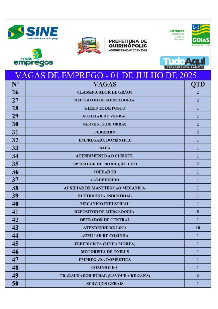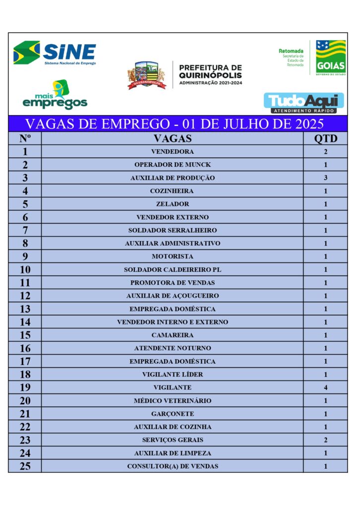 InícioDestaqueQUIRINÓPOLIS: VAGAS DE EMPREGODestaqueQuirinópolisQUIRINÓPOLIS: VAGAS DE EMPREGOBy Jornal Impar1 de julho de 20250352CompartilhadoFacebookTwitterPinterestWhatsApp CompartilhadoFacebookTwitterPinterestWhatsApp Artigo anteriorPolícia Civil prende em flagrante dois investigados que tentaram matar professor da Universidade Federal de JataíPróximo artigoAtirador mata companheiro de caça após confundi-lo com animal, em MineirosJornal Imparhttps://jornalimpar.com.brRELATED ARTICLES DestaqueAdolescente de Goiânia é suspeito de integrar rede nacional de golpistas 17 de abril de 2026 DestaqueHomem é preso suspeito de estuprar as próprias filhas em Aparecida de Goiânia 17 de abril de 2026 DestaqueQUIRINÓPOLIS: Homem é preso em flagrante por descumprir medida protetiva de urgência contra irmão 16 de abril de 2026 DEIXE UMA RESPOSTA Cancelar respostaComente:Por favor, insira seu comentário! Nome:*Por favor, digite seu nome aqui E-mail:*Você digitou um endereço de e-mail incorreto!Por favor, digite seu endereço de e-mail aqui Local na rede Internet: Salve meu nome, e-mail e site neste navegador para a próxima vez que eu comentar. Most PopularAdolescente de Goiânia é suspeito de integrar rede nacional de golpistas 17 de abril de 2026 Homem é preso suspeito de estuprar as próprias filhas em Aparecida de Goiânia 17 de abril de 2026 QUIRINÓPOLIS: Homem é preso em flagrante por descumprir medida protetiva de urgência contra irmão 16 de abril de 2026 Polícia Civil prende em flagrante pai suspeito de estuprar o filho em Minaçu 16 de abril de 2026 Carregue maisRecent Comments