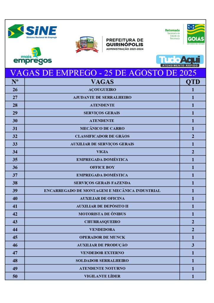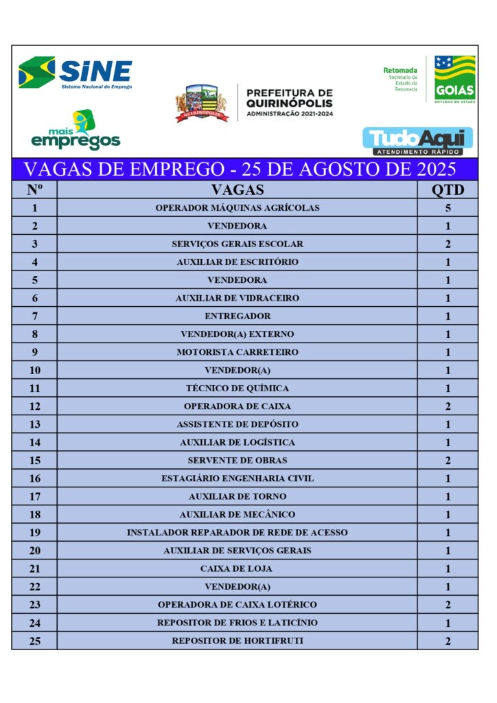 InícioDestaqueQUIRINÓPOLIS: VAGAS DE EMPREGODestaqueQuirinópolisQUIRINÓPOLIS: VAGAS DE EMPREGOBy Jornal Impar25 de agosto de 20250200CompartilhadoFacebookTwitterPinterestWhatsApp CompartilhadoFacebookTwitterPinterestWhatsApp Artigo anteriorHomem é preso em flagrante por dirigir embriagado e causar acidente em JataíPróximo artigoQuirinópolis brilha na Copa Mão na Bola, em Rio VerdeJornal Imparhttps://jornalimpar.com.brRELATED ARTICLES DestaqueQUIRINÓPOLIS: Homem que envolveu em acidente recebe alta do HM, passa mal em casa e veio óbito 17 de abril de 2026 DestaqueAdolescente de Goiânia é suspeito de integrar rede nacional de golpistas 17 de abril de 2026 DestaqueHomem é preso suspeito de estuprar as próprias filhas em Aparecida de Goiânia 17 de abril de 2026 DEIXE UMA RESPOSTA Cancelar respostaComente:Por favor, insira seu comentário! Nome:*Por favor, digite seu nome aqui E-mail:*Você digitou um endereço de e-mail incorreto!Por favor, digite seu endereço de e-mail aqui Local na rede Internet: Salve meu nome, e-mail e site neste navegador para a próxima vez que eu comentar. Most PopularQUIRINÓPOLIS: Homem que envolveu em acidente recebe alta do HM, passa mal em casa e veio óbito 17 de abril de 2026 Adolescente de Goiânia é suspeito de integrar rede nacional de golpistas 17 de abril de 2026 Homem é preso suspeito de estuprar as próprias filhas em Aparecida de Goiânia 17 de abril de 2026 QUIRINÓPOLIS: Homem é preso em flagrante por descumprir medida protetiva de urgência contra irmão 16 de abril de 2026 Carregue maisRecent Comments