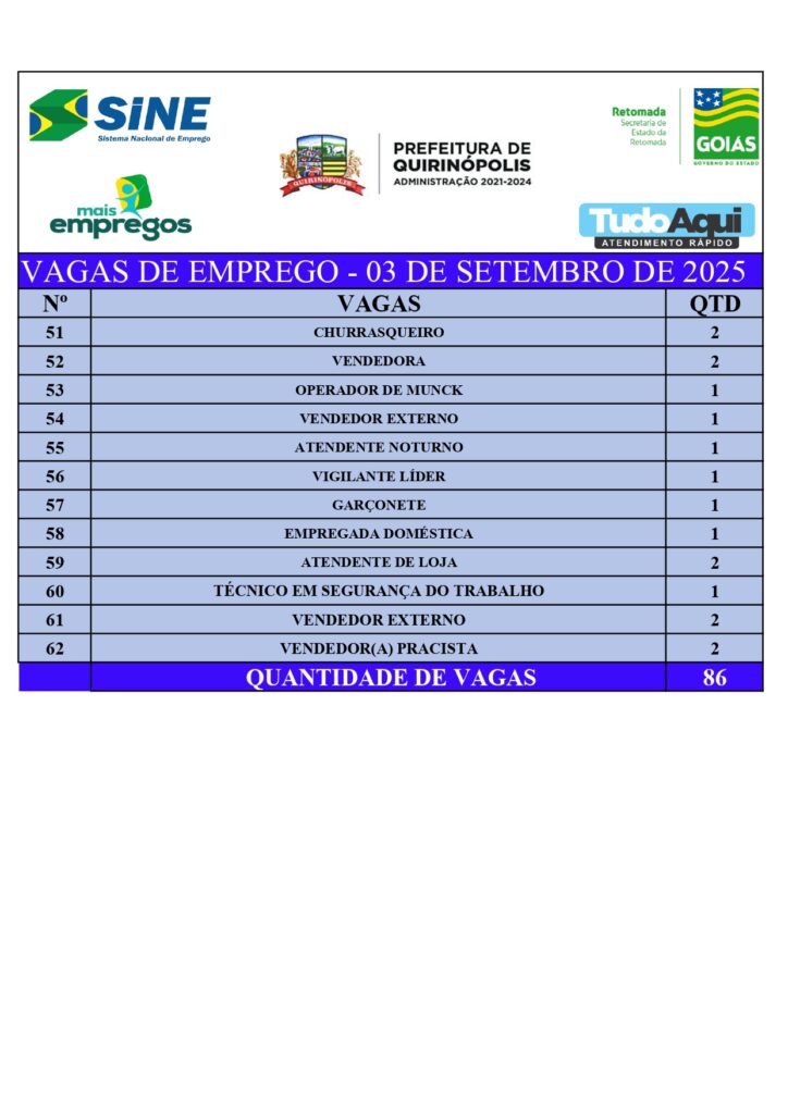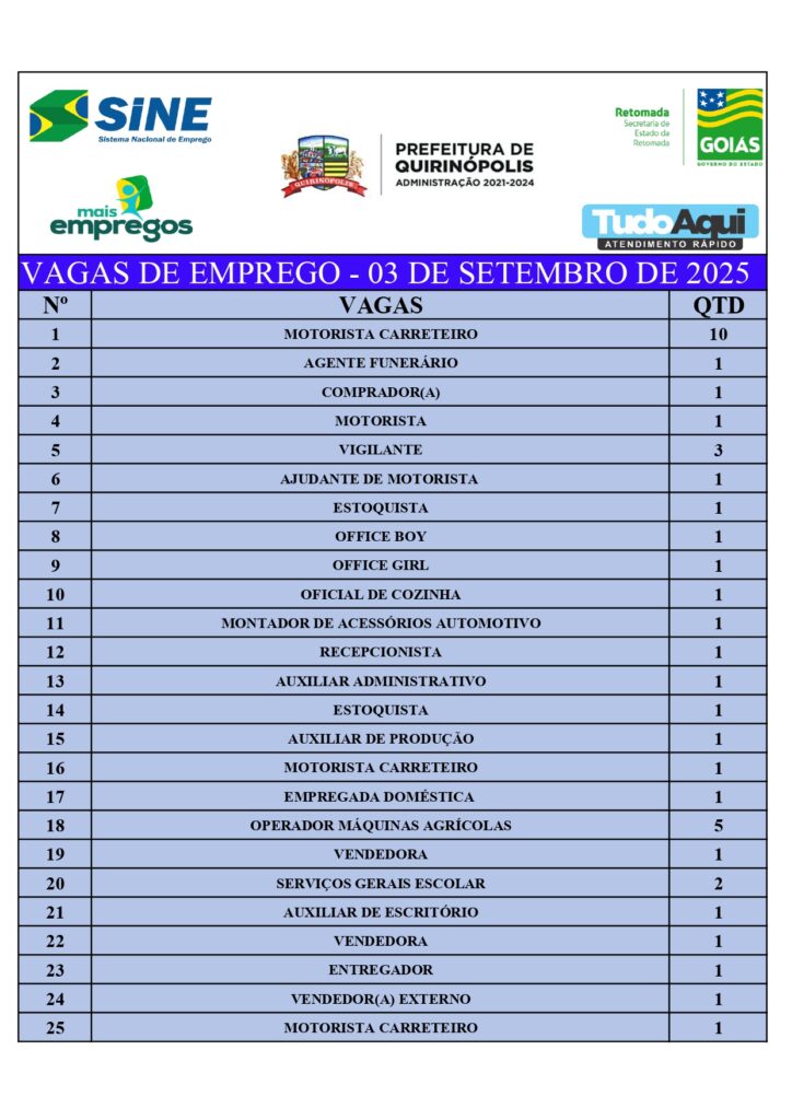 InícioDestaqueQUIRINÓPOLIS: VAGAS DE EMPREGODestaqueQuirinópolisQUIRINÓPOLIS: VAGAS DE EMPREGOBy Jornal Impar3 de setembro de 20250220CompartilhadoFacebookTwitterPinterestWhatsApp CompartilhadoFacebookTwitterPinterestWhatsApp Artigo anteriorRevendedores dizem que ração suspeita de matar 284 cavalos ainda não foi recolhidaPróximo artigoGOUVELÂNDIA: Mulher é ferida com faca, pelo o ex-companheiroJornal Imparhttps://jornalimpar.com.brRELATED ARTICLES DestaqueCaminhoneiro é preso com 2,5 toneladas de agrotóxicos contrabandeados em Goiás 24 de abril de 2026 DestaqueSÃO SIMÃO: PCGO prende em flagrante dois envolvidos na distribuição de drogas 23 de abril de 2026 DestaqueQUIRINÓPOLIS INICIA VACINAÇÃO CONTRA A DENGUE PARA CRIANÇAS E ADOLESCENTES DE 10 A 14 ANOS 23 de abril de 2026 DEIXE UMA RESPOSTA Cancelar respostaComente:Por favor, insira seu comentário! Nome:*Por favor, digite seu nome aqui E-mail:*Você digitou um endereço de e-mail incorreto!Por favor, digite seu endereço de e-mail aqui Local na rede Internet: Salve meu nome, e-mail e site neste navegador para a próxima vez que eu comentar. Most PopularCaminhoneiro é preso com 2,5 toneladas de agrotóxicos contrabandeados em Goiás 24 de abril de 2026 SÃO SIMÃO: PCGO prende em flagrante dois envolvidos na distribuição de drogas 23 de abril de 2026 QUIRINÓPOLIS INICIA VACINAÇÃO CONTRA A DENGUE PARA CRIANÇAS E ADOLESCENTES DE 10 A 14 ANOS 23 de abril de 2026 Operação Prognóstico – 2ª fase cumpre 16 mandados de busca contra núcleo financeiro de organização criminosa 23 de abril de 2026 Carregue maisRecent Comments