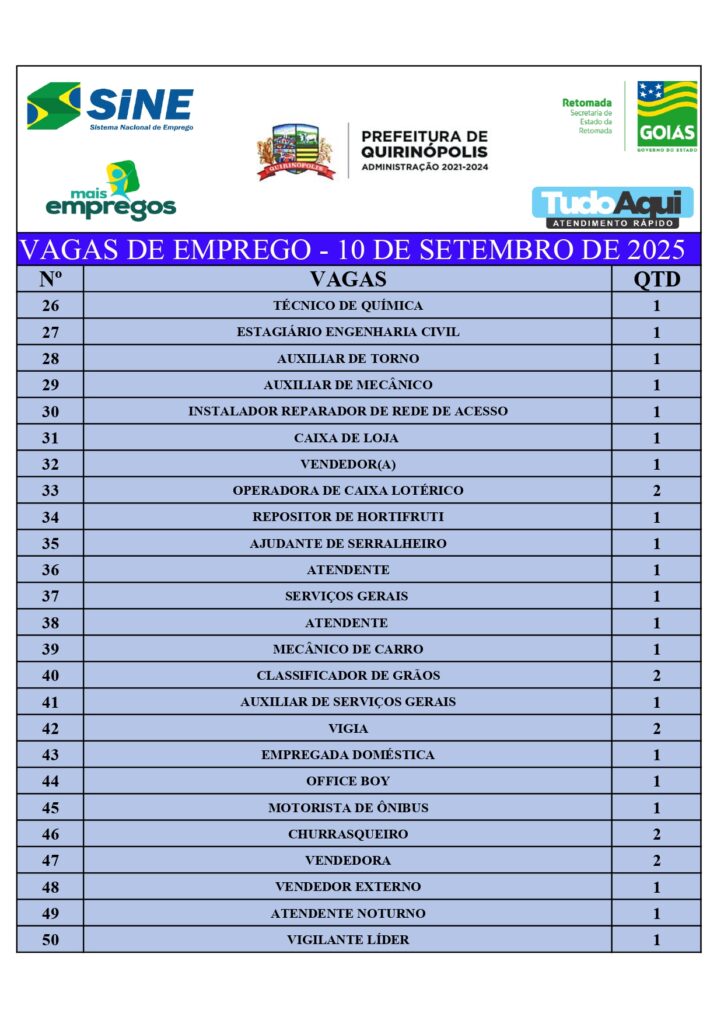 InícioDestaqueQUIRINÓPOLIS: VAGAS DE EMPREGODestaqueQuirinópolisQUIRINÓPOLIS: VAGAS DE EMPREGOBy Jornal Impar10 de setembro de 20250236CompartilhadoFacebookTwitterPinterestWhatsApp CompartilhadoFacebookTwitterPinterestWhatsApp Artigo anteriorTrês pessoas precisaram de atendimento médico após incêndio em loja de pneus em GoiâniaPróximo artigoPCGO prende investigado que adquiriu “carteira de clientes” de rival para tentar liderar o tráfico de drogas no Jd. Santo Antônio, em GoiâniaJornal Imparhttps://jornalimpar.com.brRELATED ARTICLES DestaqueSÃO SIMÃO: PCGO prende em flagrante dois envolvidos na distribuição de drogas 23 de abril de 2026 DestaqueQUIRINÓPOLIS INICIA VACINAÇÃO CONTRA A DENGUE PARA CRIANÇAS E ADOLESCENTES DE 10 A 14 ANOS 23 de abril de 2026 DestaqueOperação Prognóstico – 2ª fase cumpre 16 mandados de busca contra núcleo financeiro de organização criminosa 23 de abril de 2026 DEIXE UMA RESPOSTA Cancelar respostaComente:Por favor, insira seu comentário! Nome:*Por favor, digite seu nome aqui E-mail:*Você digitou um endereço de e-mail incorreto!Por favor, digite seu endereço de e-mail aqui Local na rede Internet: Salve meu nome, e-mail e site neste navegador para a próxima vez que eu comentar. Most PopularSÃO SIMÃO: PCGO prende em flagrante dois envolvidos na distribuição de drogas 23 de abril de 2026 QUIRINÓPOLIS INICIA VACINAÇÃO CONTRA A DENGUE PARA CRIANÇAS E ADOLESCENTES DE 10 A 14 ANOS 23 de abril de 2026 Operação Prognóstico – 2ª fase cumpre 16 mandados de busca contra núcleo financeiro de organização criminosa 23 de abril de 2026 Daniel Vilela anuncia medidas que fortalecem o e-commerce e viabilizam expansão da Shopee em Goiás 23 de abril de 2026 Carregue maisRecent Comments
