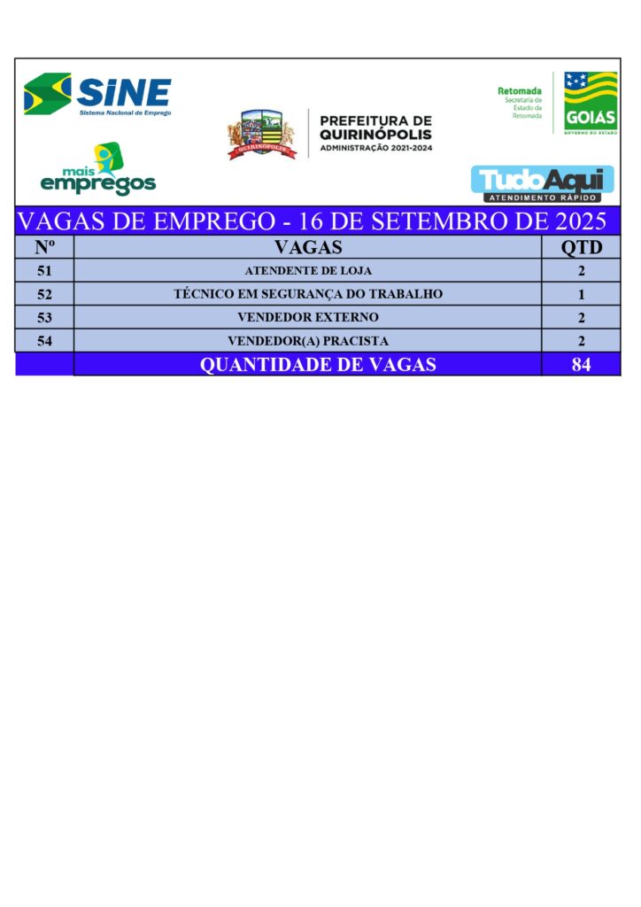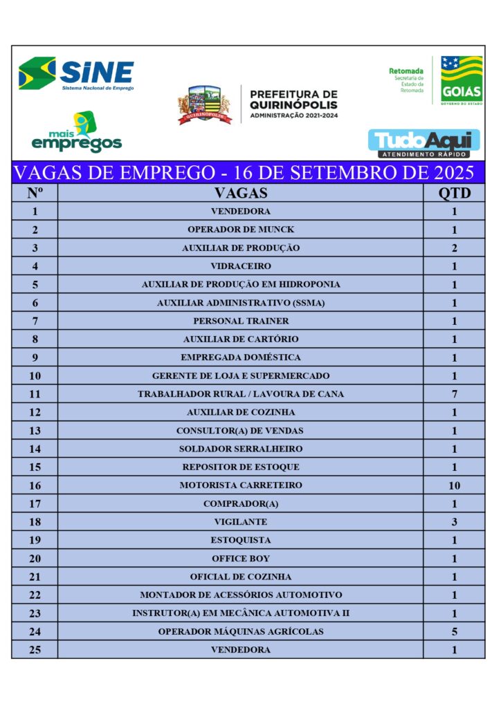 InícioDestaqueQUIRINÓPOLIS: VAGAS DE EMPREGODestaqueQuirinópolisQUIRINÓPOLIS: VAGAS DE EMPREGOBy Jornal Impar16 de setembro de 20250206CompartilhadoFacebookTwitterPinterestWhatsApp CompartilhadoFacebookTwitterPinterestWhatsApp Artigo anteriorPrefeitura de Quirinópolis inicia remapeamento dos usuários do SUS com apoio dos Agentes Comunitários de SaúdePróximo artigoQuatro pessoas são atropeladas na porta de igreja após discussão, em AnápolisJornal Imparhttps://jornalimpar.com.brRELATED ARTICLES DestaqueQUIRINÓPOLIS: Homem que envolveu em acidente recebe alta do HM, passa mal em casa e veio óbito 17 de abril de 2026 DestaqueAdolescente de Goiânia é suspeito de integrar rede nacional de golpistas 17 de abril de 2026 DestaqueHomem é preso suspeito de estuprar as próprias filhas em Aparecida de Goiânia 17 de abril de 2026 DEIXE UMA RESPOSTA Cancelar respostaComente:Por favor, insira seu comentário! Nome:*Por favor, digite seu nome aqui E-mail:*Você digitou um endereço de e-mail incorreto!Por favor, digite seu endereço de e-mail aqui Local na rede Internet: Salve meu nome, e-mail e site neste navegador para a próxima vez que eu comentar. Most PopularQUIRINÓPOLIS: Homem que envolveu em acidente recebe alta do HM, passa mal em casa e veio óbito 17 de abril de 2026 Adolescente de Goiânia é suspeito de integrar rede nacional de golpistas 17 de abril de 2026 Homem é preso suspeito de estuprar as próprias filhas em Aparecida de Goiânia 17 de abril de 2026 QUIRINÓPOLIS: Homem é preso em flagrante por descumprir medida protetiva de urgência contra irmão 16 de abril de 2026 Carregue maisRecent Comments