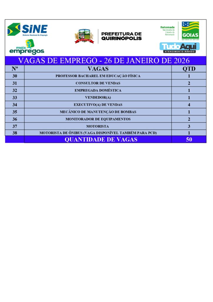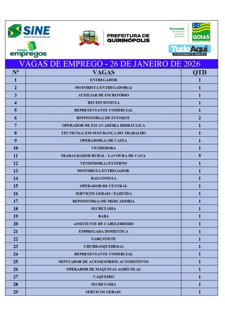 InícioDestaqueQUIRINÓPOLIS: VAGAS DE EMPREGODestaqueQuirinópolisQUIRINÓPOLIS: VAGAS DE EMPREGOBy Jornal Impar26 de janeiro de 20260159CompartilhadoFacebookTwitterPinterestWhatsApp CompartilhadoFacebookTwitterPinterestWhatsApp Artigo anteriorJovem de 22 anos é morto a tiros durante festa em espaço de eventos de HidrolândiaPróximo artigoQUIRINÓPOLIS: Perturbação de sossego alheioJornal Imparhttps://jornalimpar.com.brRELATED ARTICLES DestaqueQUIRINÓPOLIS: Homem que envolveu em acidente recebe alta do HM, passa mal em casa e veio óbito 17 de abril de 2026 DestaqueAdolescente de Goiânia é suspeito de integrar rede nacional de golpistas 17 de abril de 2026 DestaqueHomem é preso suspeito de estuprar as próprias filhas em Aparecida de Goiânia 17 de abril de 2026 DEIXE UMA RESPOSTA Cancelar respostaComente:Por favor, insira seu comentário! Nome:*Por favor, digite seu nome aqui E-mail:*Você digitou um endereço de e-mail incorreto!Por favor, digite seu endereço de e-mail aqui Local na rede Internet: Salve meu nome, e-mail e site neste navegador para a próxima vez que eu comentar. Most PopularQUIRINÓPOLIS: Homem que envolveu em acidente recebe alta do HM, passa mal em casa e veio óbito 17 de abril de 2026 Adolescente de Goiânia é suspeito de integrar rede nacional de golpistas 17 de abril de 2026 Homem é preso suspeito de estuprar as próprias filhas em Aparecida de Goiânia 17 de abril de 2026 QUIRINÓPOLIS: Homem é preso em flagrante por descumprir medida protetiva de urgência contra irmão 16 de abril de 2026 Carregue maisRecent Comments
